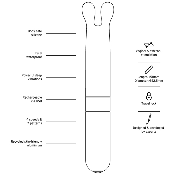 Love Not Warバレットシリーズは、美しいデザイン性とサステナブルであること、どちらも兼ね備えた素材「リサイクルアルミニウム」をベースに作られています。お肌に直接当たる先端部分は、ふんわりとソフトな心地よいシリコン。表面がベタつかず、なめらかですべすべしています。柔らかさを保ちつつもホコリは付きにくく、洗い流してお手入れすることが簡単です。撫でるように繊細な振動から、お腹の中心に向かって響きわたるパワフルな振動、さらに、リズミカルな脈動まで、全10種類のバラエティに富んだ振動パターンを選べます。ボタン一つでシンプルな操作。便利なのはトラベルロック機能。トラベルロック機能で持ち運びに便利。30分以内であれば1mまで浸水可能な完全防水仕様なので、万が一浴槽に落としてしまっても安心。バスルームでも楽しめて、使える幅も広がます。●素材:シリコン、リサイクルアルミニウム、リサイクルABS樹脂、バイオプラスチック●充電方法:USB●充電時間:フル充電2時間●連続使用可能時間:最大1時間●振動パターン:10(振動強弱4段階+リズムパターン6種)●防水:完全防水(IP67)●トラベルロック機能つき※こちらの商品は受注発注商品の為、ご注文から発送までに3、4営業日掛かる場合が御座います。 |