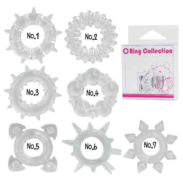大きな突起でパートナーを刺激!いつも使うコックリングでは物足りない方にオススメの「NEWリングコレクション7」。初心者の方でも装着簡単!使い心地の良い柔軟性に優れたソフト素材で、力強い締め付けとフィット感を実現!早漏防止やパワーアップ効果が期待できます。使い方は自由!単体でも複数のコックリングを取り付けても楽しめる、男性用アダルトグッズです。