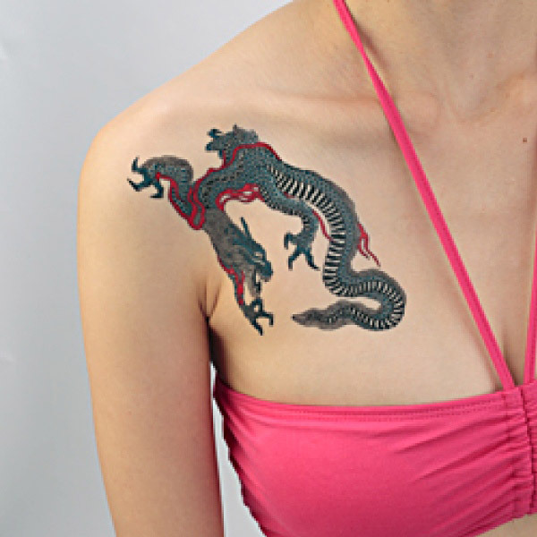 本物の刺青師がデザインした、本格派のタトゥーシール「臥龍」。様々な場所に貼って楽しめる、マルチなレギュラーサイズ!水を使い肌に転写するだけで、リアルな仕上がりのタトゥーを2〜3日楽しめます。肌の伸縮にあわせて伸び縮みする特殊な素材を採用し、水に濡れても剥がにくい強力仕様です。剥がす際は専用リムーバー等で優しく拭き取ってください。