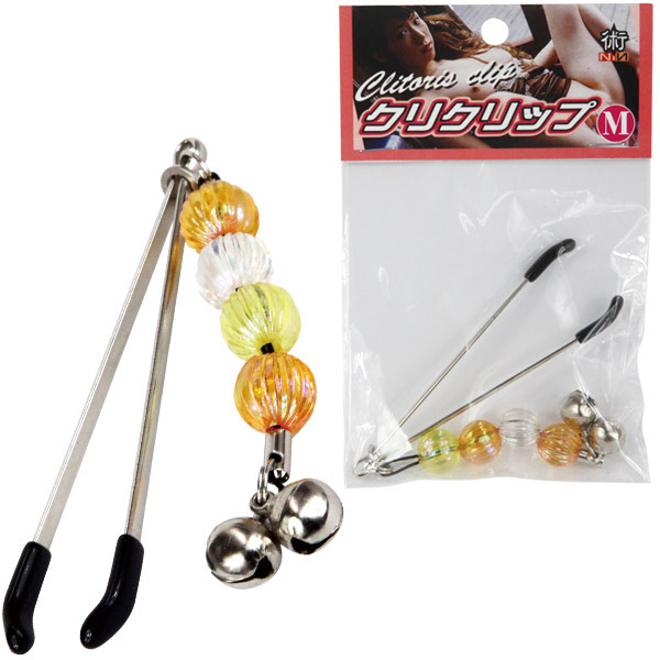 動けばチリンチリンと鈴の音が!カラフルなビーズ飾りがお洒落な、M女好みのクリトリス挟み。リングをスライドさせると摘む圧力を微調整できます!クリトリスだけでなく、乳首責めにも使える調教用SMアクセサリーです。摘んだ部分を傷つけにくいラバーコート仕様。甘噛みされたようにジンジンとする痛みがクセになる、快感SMグッズです。1個入り。※製造時期によりビーズの色が画像とは異なる場合がございます。