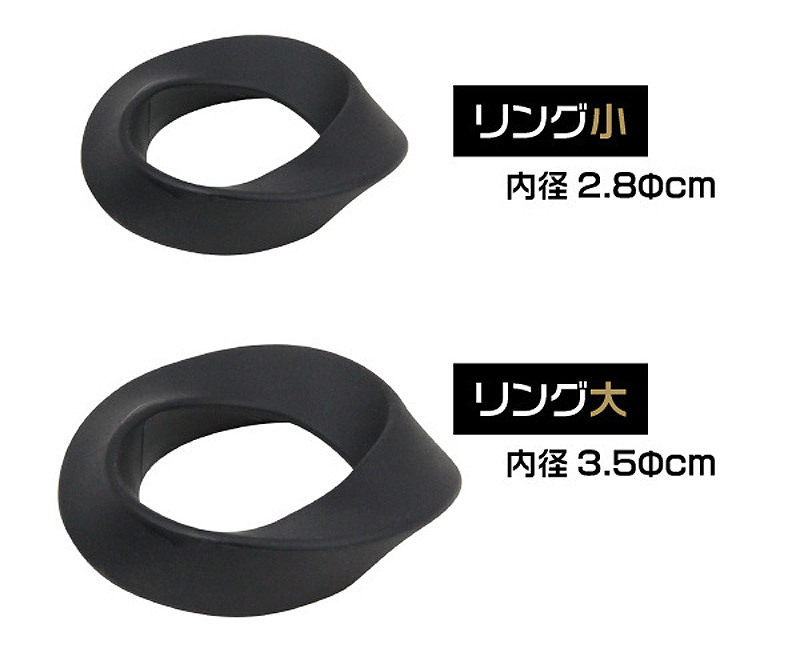 メビウスリングのような不思議フォルム!大&小の二種類がセットになったコックリング。●内径3cmと3.5cmの二本入り●しっかりとした装着感のあるやや太めのサイズ●サラッと心地の良いシリコン100%製●シンプルでオシャレなパッケージ入り。大と小をそれぞれ単体で楽しんでもよし、ダブル装着でパワーアップさせてもよし!その日の気分や状態によってサポート力を変えられる、スタイリッシュデザインのコックリングです。