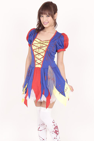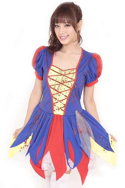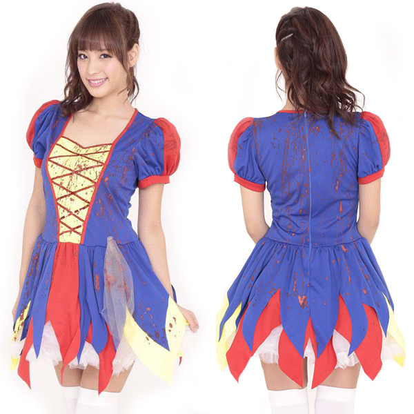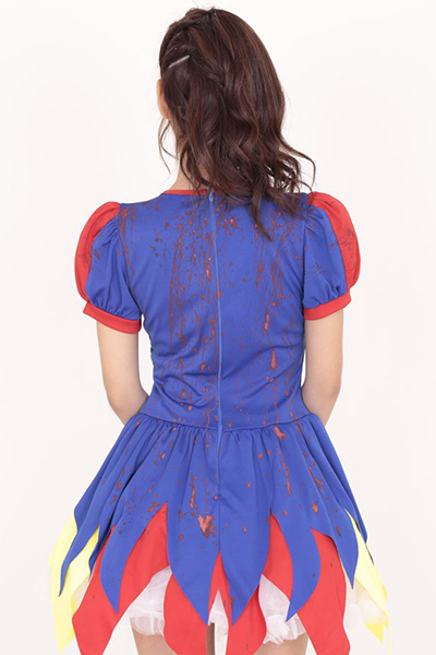 あのヒロインがホラーテイストに…!ビビッドカラーの血のり付きコスチューム。●赤×青×黄色のビビッドカラー●ギザギザ裾加工のミニ丈ワンピ●血しぶきのようなペイント付き●ハロウィンに最適なゾンビ風。真っ赤なリンゴを食べたらゾンビになっちゃった?おとぎの国のプリンセスにホラー要素を取り入れた、ユニークなハロウィン用コスチュームです。※こちらの商品は受注発注商品の為、ご注文から発送まで2〜3営業日掛かる場合が御座います。