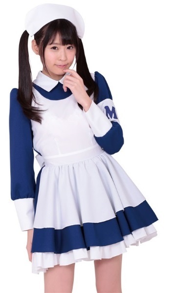 清楚度100%な癒しの天使♪涼やかカラーが可愛いナースコスチューム。●エプロン一体型襟付きワンピース●クラシカルな印象のロングカフス●ウエストで結ぶふんわりリボン●たっぷりフレアのスカート裾●Mentholの「M」ロゴ入り腕章●本格的ナース帽&ピン2本付き。ネイビーカラーに「M」字の腕章…どことなく某キャラクターを彷彿とさせるナースワンピース。メイド服のようなガーリー感で可愛らしい雰囲気に仕上がります。