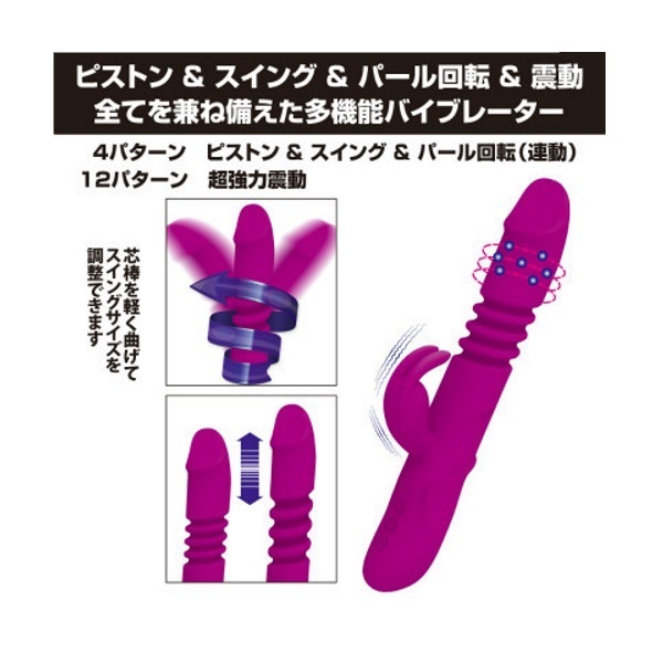 これ一本に全部凝縮!ピストン、スイング、内蔵パール回転、クリ振動…欲しい機能がすべて揃ったマルチな多機能バイブ。●医療グレードの滑らかシリコン●約1.5cmほどの伸縮ピストン機能●スイング幅の調整可能な芯棒入り●うねうねと刺激するパール回転●各機能の調整は4パターン(連動)●クリバイブ振動は12パターン●生活防水仕様で衛生的に使用可。アレもコレも全部入り!欲しい機能をすべて網羅したお得感満載な「プリティラブ」シリーズのオールインワンバイブレーターです。