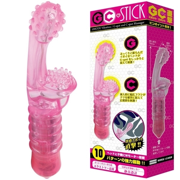 GスポットとCスポットを直撃!快感ポイントを狙い撃ちする悶絶刺激バイブレーター「GCスティック」。●柔らかで丈夫な弾力エラストマー素材●ぷっくり膨らんだイボイボ付きGヘッド●幅広い面で捉えるブラシ突起クリバイブ●先端と子機が振動するダブルモーター●多彩な10パターンのバイブレーション●プレイの雰囲気を邪魔しない静音設計●単四電池×2本使用(動作確認用付属)。快感ポイントを同時責め!オルガスターのようなフォルムのバイブレーター。丸みのあるイボヘッドがGスポットを、幅広ブラシの子機がクリトリスを確実に捉えて広範囲を刺激します。 |
