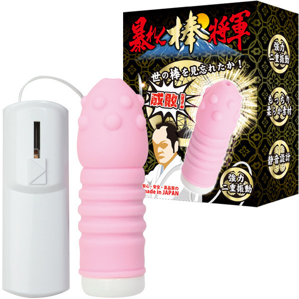 世の棒、見忘れたか!太く逞しい棒と先端イボ&凸凹形状が暴れまわるショートサイズのバイブレーター「暴れん棒将軍」。本体はもっちりと柔らかな素材で最高の挿入感!内蔵モーターの両サイドにあるおもりが共鳴して芯まで響くパワフルな二重振動の快感を生み出します。コード付きのコントローラーは微調整可能なスライド式!扱いやすい小ぶりなサイズで挿入しても当てても楽しめるバイブレーターです。安心の日本製、単三電池×2本付属。