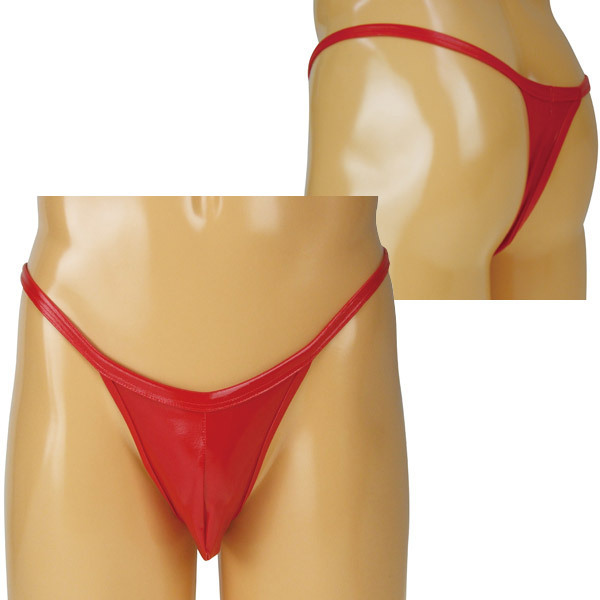 メンズ エナメルフロントフルシームTバック レッド