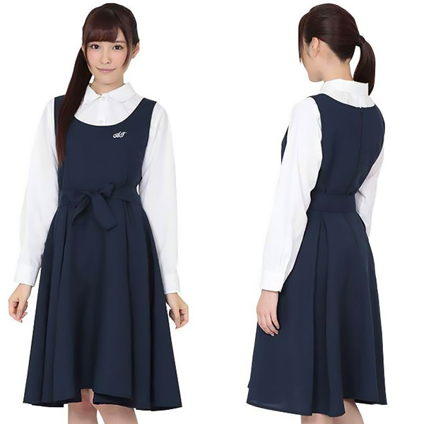 ちょっぴりレトロっぽさを感じさせる制服コス!ネイビーカラーのジャンパースカートとホワイトカラーの長袖ブラウスが清楚感漂うスクールコスチューム。リボンをウエスト部分で結べば可愛らしさもさらにアップします。スカート部分は幅が広めのプリーツが入っており、丈も長めなので着るだけでピュアな真面目女子を演出できます。