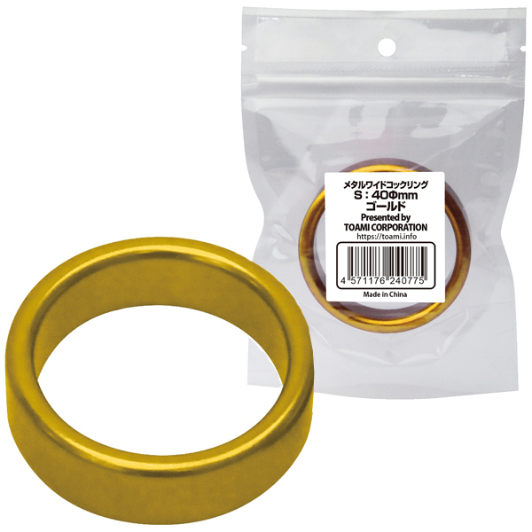 メタリックゴールドが豪華に輝く内径4cmのアルミニウム合金製コックリング。手軽に締め付けを味わいたい方だけでなく、見えない部分のお洒落を楽しみたいという方にも最適!本品以外にも複数色ご用意しておりますので、どうぞお好きなカラーをお選び下さい♪吊るせるクリアパック入り