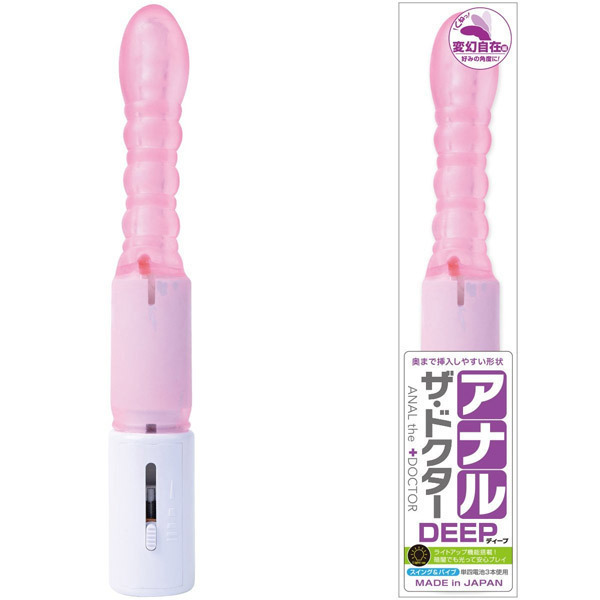 くねっと曲げて刺激!アナル開発に最適な人気のアナルバイブシリーズから好みの角度に曲げられるNEWタイプ「アナル・ザ・ドクター ディープ 変幻自在編 ピンク」が登場。奥まで突けるストレートボディの『ディープ』は丸みを帯びたエッグ型の先端部と、細リングと太リングを交互に連ねたようなポコポコフォルムが特徴。バイブレーションはスライドスイッチで簡単に調節可能!暗闇で使うと幻想的な雰囲気を楽しめるライトアップ機能も搭載されています。アナル初心者さんでも安心してスムーズに挿入できる日本製アナルグッズです。単四電池3本付属。※仕様変更によりスイング機能は搭載されておりません。 |