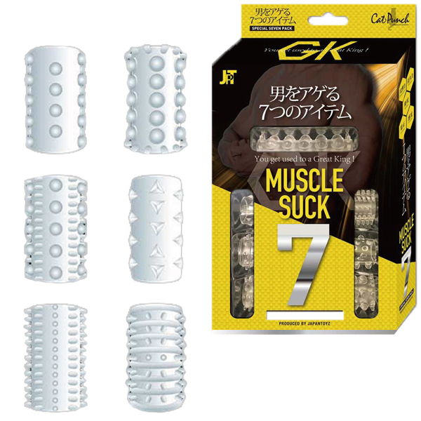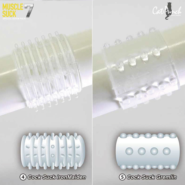 伸縮性が高く締め付け抜群!摩擦力を上げて男をアゲる高級シリコン製のペニスサック7種類セット。悩める男性を徹底的にサポート!持久力を上げるほか、多種多様な刺激でパートナーとのプレイを充実させる♪
