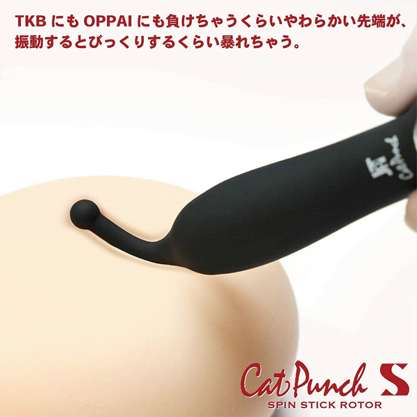 触覚が高速で狂い踊る!高周波&高速旋回でスピン振動するUSB充電式スティックローター「キャットパンチ」。球体のついたピンポイントヘッドが敏感部位を刺激!強く押し当てるようにすれば旋回するヘッドが小刻みに叩く♪振動パターンは全部で10種類、メンテナンスしやすい生活防水仕様!1つのボタンで簡単操作できるUSB充電式ローター。充電ケーブル付属、ブラックカラー