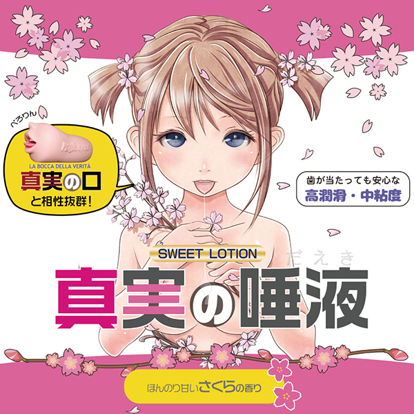 ほどよくとろける感じでフェラホールとの相性がバツグンのローション「真実の唾液さくら」。真実の口シリーズのために開発されたフェラホ用のローションで高潤滑な中粘度タイプとなっています♪バランスの良いテクスチャのため、手コキとかにも良さ気です。ほんのり甘いサクラの香りがついているので甘いときめきを嗅覚でも感じられます♪かわいいスリーブケースを剥がせば無地のボトルになるのでパッケージが気になる人にも安心です。