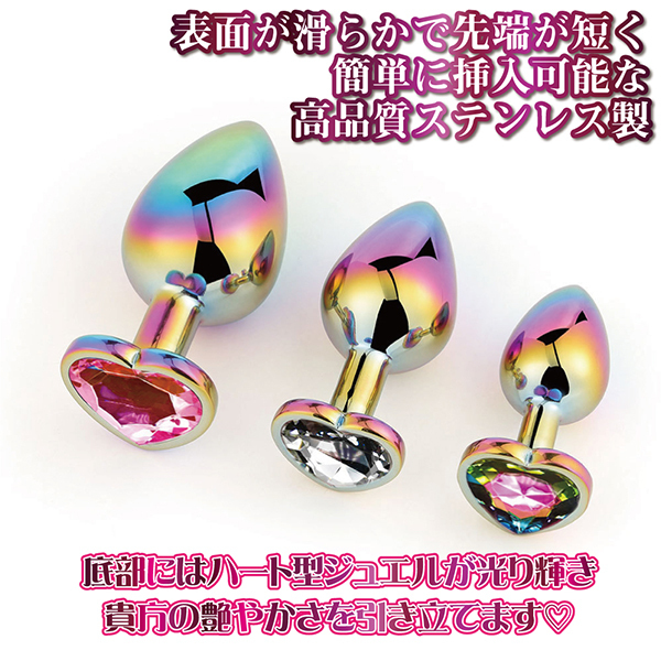 素材は高品質なステンレス製!表面が滑らかで先端が短く、簡単に挿入が楽しめるマルチカラーハートプラグハート形のアナルプラグです♪使用後は綺麗に洗浄ができ、衛生的に保管しておくことが可能!収納袋付きだから1つずつ収納できて、擦り傷なども防止できます。本品はジョークグッズとなります。その他の目的でご使用された際の責任等は一切負いかねますのでご了承ください。