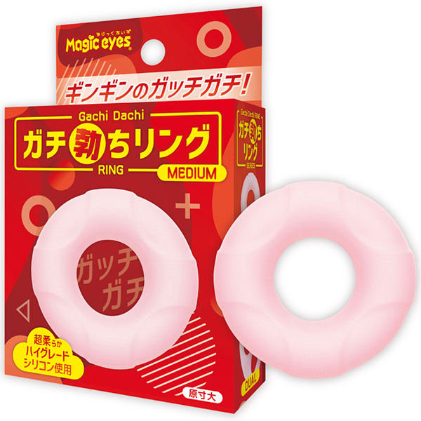 超やわらかシリコンリング。全長50mm、内径22mm、厚み14mmのミディアムサイズは根元だけではなく中央や先に着けても使用頂けます。一人での使用はもちろんカップルでもお楽しみいただけます。LARGEサイズとの2個つけでギンギンのガッチガチへ。使用後は中性洗剤等で洗って水を拭き取ったのち直射日光の当たらない場所で乾燥、保管をしてください。
