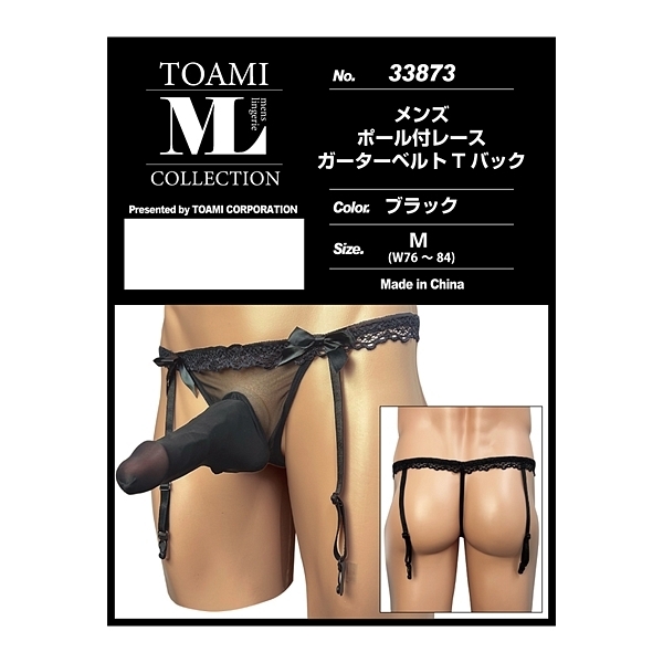> メンズ ポール付レースガーターベルトTバック ブラック