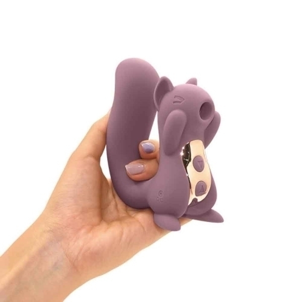コンパクトサイズの可愛らしいリス型の吸引バイブ。吸引パワーは10段階あるので、優しく吸われるような刺激や強く吸われるような刺激まで幅広くお楽しみいただけます。シッポ部分にはパワフルなモーターが内蔵されているので挿入バイブとしても使えます。吸引バイブを楽しみたい時、挿入バイブを楽しみたい時、その時の気分や気持ちで使い分けできるバイブです。●カラー:ライラック