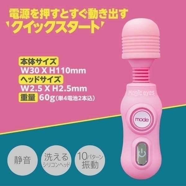 1秒間で250回転の強振動モーターを搭載した小型デンマ。電源の長押しが必要ないクイックスタートタイプ。洗えるシリコンヘッドと10パターン振動、静音設計とカワイイ見た目に似合わない高性能。単四電池が2本付属していますので購入してすぐにご使用いただけます。●カラー:ピンク