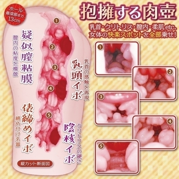 女体の愉悦を堪能できるラボグロウン肉壺オナホール。たわわなバスト、ツンと尖った乳首・弾力あるクリトリス・そして熟れた膣内。「女体楽園 All in One」はそれら箇所の“感触”をラボグロウン(研究所開発)し、「性欲処理の肉壺」として具現化したオナホールです。最大特徴は上部の真紅の硬イボ「乳頭イボ」と「陰核イボ」の存在。