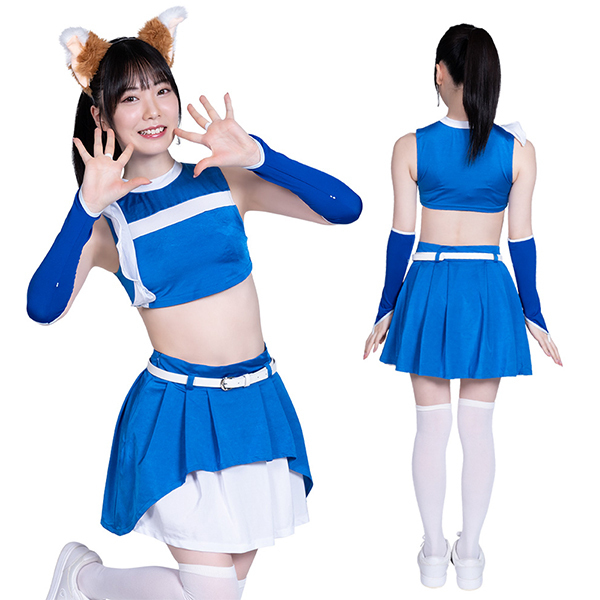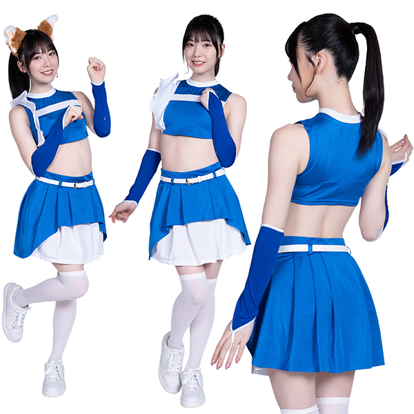 新時代のチアガール衣装スポーティで本気で踊れるノースリーブトップスと2枚重ねたようなオシャレスカートで可愛さ大爆発!耳を付ければ…※猫耳は付属しておりません。別途ご購入をお願いします。
