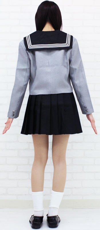千鳥格子柄のジャケットが上品な、お嬢様系セーラー服コスプレ。上着・スカート・リボンは、セーラーには珍しい黒色!ジャケットなしでもシックに着こなせます。こだわりデザインが楽しめちゃう制服コスチュームです。※水洗い不可、塩素系漂白剤による漂白不可、アイロンは中温で当て布使用、ドライクリーニング可、色落ちの可能性があります。※こちらの商品は在庫の状況によりお届けまでに4日〜7日程度かかる場合がございます。