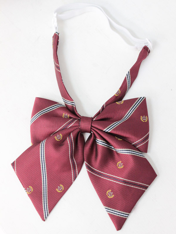 定番のエンジ地にラインと紋章を入れた、ちょっぴり高級感のあるスクールリボン(単品)。簡単に着脱できるゴム仕様で、長さ調節も可能!いつもの制服に着けるだけで、お嬢様風の制服アレンジが楽しめるコスプレ小物です。※こちらの商品は在庫の状況によりお届けまでに4日〜7日程度かかる場合がございます。
