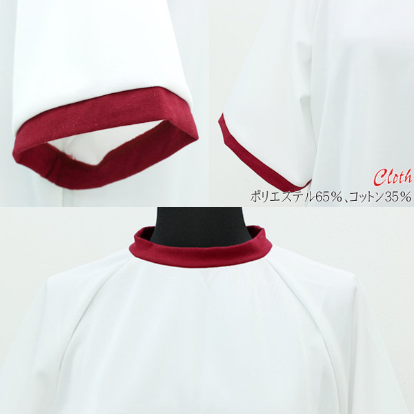 Mサイズ:B〜110cm 着丈86cm 袖丈40cm 素材:ポリエステル65%、コットン35% 体操着ルームウェア 色:エンジ