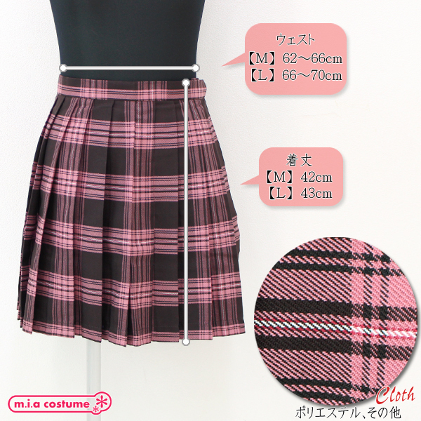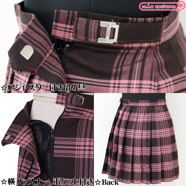 小物が入れられるポケット付き!ピンクとブラウンのチェック柄が可愛いプリーツスカート単品。お気に入りの制服コスプレと合わせても良いですし、私服用としてもとってもキュート♪女の子らしいカラーリングを楽しんで◎※水洗い不可、塩素系漂白剤による漂白不可、色落ちの可能性があります。※こちらの商品は在庫の状況によりお届けまでに4日〜7日程度かかる場合がございます。