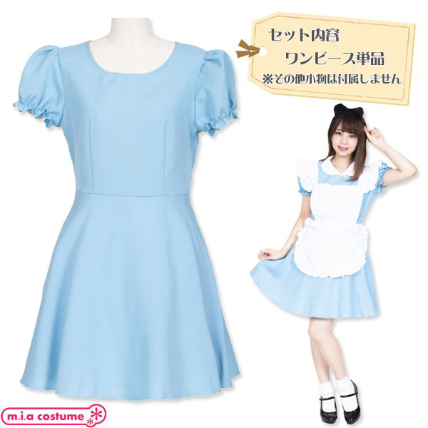 サックスブルーの爽やかな水色パフ袖ワンピース単品。着丈85cm、身長155〜165cmに対応◎付襟やボーダーニーハイ、「おかえりダーリンエプロン(cm0341)」と組み合わせればアリス風コスプレも楽しめます。Fサイズ※洗濯機不可、弱い手洗い可、塩素系漂白剤による漂白不可、アイロンは中温で当て布使用、石油系ドライクリーニング可※こちらの商品は在庫の状況によりお届けまでに4日〜7日程度かかる場合がございます。