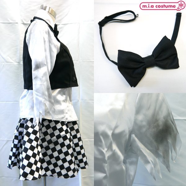 シャツ、スカート、ベスト、帽子、それに長さ調節が可能な蝶ネクタイが付いてこのお値段♪セット内容が充実したトランプマジシャン風のコスチュームです。これを着れば気分はホラー映画のゾンビドール!?モノトーンの洋風ゴシックなのでホラーにぴったり♪ハロウィン仮装や文化祭、コスプレ撮影会やイベント余興にもおすすめです!※汚れ風加工あり、石油系溶剤によるドライクリーニング可、塩素系及び酸素系漂白剤の使用禁止、アイロンは160℃を限度とし中温140〜160℃でかけます、日陰のつり干しがよい、洗濯の際は付属品を取り外してください、色落ちする場合があるので他のものと分けて洗濯下さい、全ての漂白剤の使用は避けて下さい、タンブラー乾燥は避けて下さい。※こちらの商品は在庫の状況によりお届けまでに4日〜7日程度かかる場合がございます。 |