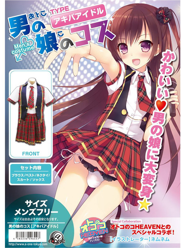 憧れの男の娘に変身!赤チェックが可愛いアイドルコスチュームに、メンズサイズが登場しました。半袖ブラウス、ベスト、ネクタイ、スカート、ソックスの豪華一式セット!これならサイズが合わずに叶わなかった女装にもチャレンジできますね。