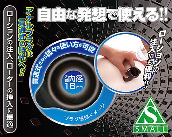 アナルプラグは貫通式の時代へ…!自由な発想で使える最新型のアナルグッズ。●存在感のあるブラックカラー●ビギナーさんでも使えるSサイズ●プレイの幅が広がる貫通型●先端の内径は約16mmでローション注入&ローター挿入に最適。貫通した穴からローションを流し入れたり、アナルやアソコに挿入して穴を覗くと内部の様子をじっくり観察することができます。様々な使い方を試して、あなた好みの新たな刺激&快感を見つけましょう。