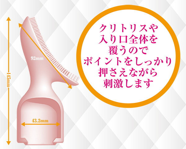 ホールド感が違う!包み込むようにフィットする中型電マアタッチメント。●中型クラスのマッサージャー対応●ヘッドをすっぽり覆う立体的形状●プニプニ質感でホールド力も抜群●ズレにくくプレイを快適サポート●長さ92mmのびっしり楕円形ブラシ●湾曲ボディが女性器丸ごと刺激。外イキ派ガールはもちろん、男性から女性へのクリトリス責めにも有効!ひしめくように隙間なく配置されたブラシ突起が、女性器に覆いかぶさるように包み込んで刺激する電マカバー。広範囲を刺激できるので、カーヴィボディを生かした全身マッサージにもおすすめです。 |