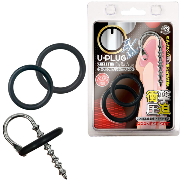高刺激&圧迫感!!尿道アイテム『U-プラグ』に上級者向けのEXシリーズが新登場!COOL&重量感のあるメタルタイプはそのままに前作よりもハードな見た目と高次元の刺激がアナタの探求心と尿道を満たします。普通では満足できない尿道エキスパートへ!付属のリングを装着してプラグ位置を調整可能。リングサイズはご自身に合わせてお選びください。<スケルトン>骨のような凹凸形状が尿道全体を圧迫しながら奥へ進むたびにグリグリと刺激する!※無理のない範囲でご使用ください。商品特性をご理解のうえ自己責任でお楽しみください。 |