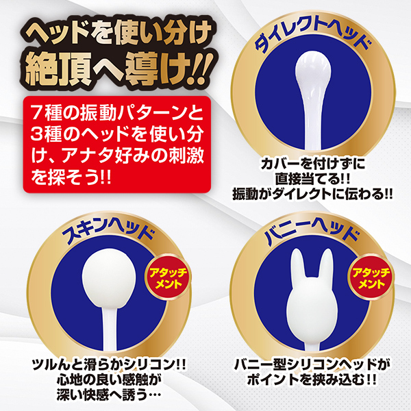 クリや乳首にも♪使い勝手バツグンのピンポイントローター「ワンポイントスティック」です。アタッチメントが2種類付属していてクリや乳首などのピンポイント刺激に威力を発揮!生活防水だからメンテナンスも簡単で極小ヘッドが気持ちいいところを集中して刺激してくれます♪7段階の強力振動とアタッチメントヘッドはカバーを付けずに直接当てたり色々と楽しめます!カバーを付けずに直接当てて気持ちいいダイレクトヘッド、ツルんと滑らかシリコンのスキンヘッド、ポイントを挟み込むバニー型シリコンヘッドと用途にあわせて好みの刺激を使い分けよう♪USB充電式で約120分の充電で連続使用時間は約45分。振動数は7段階、生活防水設計で静音設計。強弱3段階で幅広くお楽しみ頂けます♪ |