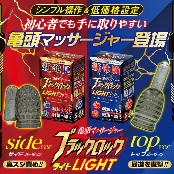 亀頭を刺激するキトニーローター「ブラックロック」のライト版、「ブラックロック ライト」が登場♪マイクロローターをポケットに装着する仕様となっていて、サイドとトップの2タイプを展開!こちらはサイドバージョンで、キャップの中がドットとなっておりローターポケットがサイドに付いてカリやウラスジを狙いやすい造りとなっています♪付属のローターはワンボタン操作のシンプル設計!これを使ってスローオナニーや亀頭弄り、勃起を促すも良し♪他にはない新感覚をぜひ発見してください。