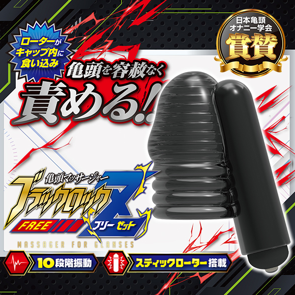 過激に!本能的に!絶★叫★級!スティックローターを搭載した『ブラックロックフリー』シリーズ最新作!!スティックローター搭載で、より自由に遊ぶことが可能になったブラックロックフリー。『Z』は、ローターがキャップ内に食い込むように配置されているので、激しい刺激を愉しめます。ローターをさらに食い込むようにグイッと動かせば、驚くような快感を得られます。過激な刺激で、絶叫射精を全身で感じよう!!<キャップ特徴>キャップ内部に食い込むように配置されたスティックローターが、竿・亀頭・カリクビに悶絶する程の圧迫刺激を与え、深く感じた事のないような射精へと導く!!竿を擦らず刺激に耐え、男潮をめざせ!!スティックローター特徴】ズッシリ重みのあるロングタイプのスティックローター。キャップから外せるので敏感部分に当てたり穴に挿れたりも出来ちゃう!!振動パターンは多彩な10段階。一極集中で強力振動が楽しめる。 |