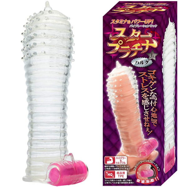 ロングプレイとパートナーへのシゲキUPが楽しめる爆裂振動サック登場!根元部分にワンタッチでON/OFF操作出来る高速振動マイクロモーター搭載!局部にピンポイント刺激を楽しめます。ゆったり装着出来る、Lサイズサック!サイズが大きいのでパートナーに余計な刺激はプラスせずにズリズリ刺激のウェーブ形状に先端部に突起を配置したシンプルなのに漢のダイナミックさをアピールできるハルクスタイル!