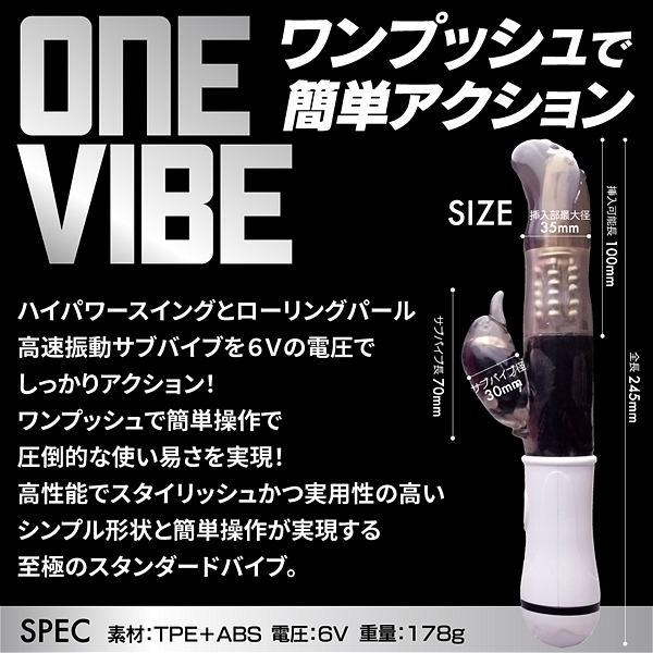 強力なスイングとローリングパール・高速振動サブバイブを6Vのハイパワーでワンボタン・ワンプッシュで簡単操作!パターンもワンアクションで圧倒的な使い易さを実現!高性能でスタイリッシュかつ実用性の高いシンプル形状と簡単操作が実現する至極のスタンダードバイブ。●カラー:ブラック