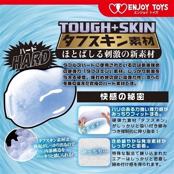 1つで2つの快感を楽しめるダブルパラレル構造。妹のスパイラルヒダと姉の多数のツブ&ヒダの両方が楽しめる!ダブルスハードに使用されているのは刺激強めの硬弾力「タフスキン」素材。しっかり刺激を与える硬度、挿れ心地の良い高弾力性。すべてを兼ね備えた究極のハード素材です。ダブルスハード姉妹は一つで「スパイラルとツブイボを配置した妹ゾーン」と「多数のイボとランダムなヒダの姉ゾーン」両方が楽しめます。非貫通タイプなのでガンガン攻める奥突き感を堪能できます。高品質ローションが付属しています。