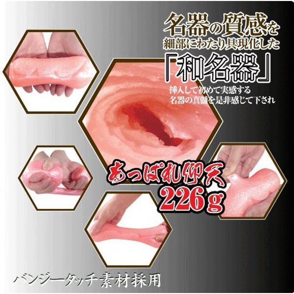 和名器の真骨頂、此処にあり!名器の質感を細部にわたって再現した無次元構造オナホール(非貫通型)。素材は油の染み出にくい、モチモチとしたバンジータッチ素材を採用。殿方を極楽へと誘う、日本製和名器「お千代」の内部は快感の無次元構造!恍惚と並ぶ悦感膣丘、淫靡に包み込む乱舞粒に加え、激しく圧しつける旋律の肉内壁を見事に再現!膣のうねりに悶え踊りながら、ヒダと粒がねっとり絡みつく絶頂名器オナホールです。