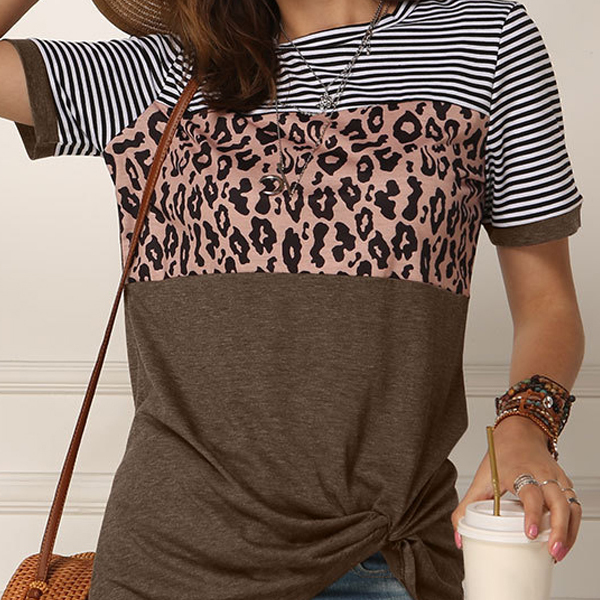 胸元でヒョウ柄に切り替えたブラウンカラーの半袖Tシャツ。ボーダーとヒョウ、無地の3種類を組み合わせた個性が光る一枚!お洒落着としても近所へのお出かけ用としても使えます。別色でピンクもご用意しております◎Mサイズ※裾は結んであるように縫い付けてあります。※商品写真はできる限り実物の色に近づけるよう加工しておりますが、お客様のお使いのモニター設定、お部屋の照明等により実際の商品と色味が異なる場合がございます。※個人測定の為、サイズに多少のズレがある場合が御座います、糸の縫いがあまかったりほつれがある場合がございますので、理解の上で購入してください。 |
