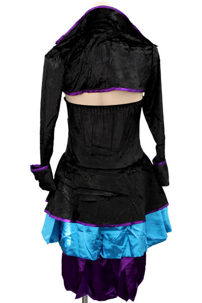 異素材コンビで大人の雰囲気に♪セクシークールなマジシャン風のコスプレ衣装。パープルカラーのパイピングを差し色にした黒ベロア素材と、光沢ブルーサテンの異素材で仕上げたベアトップデザインのミニワンピース!胸元は4段フリルで飾って可愛らしさもしっかり!スカート後ろのテール部分は縫い付けです。ワンピとお揃いベロア素材のミニ丈ボレロは、カフス付きの長袖仕様!サテンのマジシャンハットとビッグなリボンもセットです。※セット内容以外は付属しておりません。