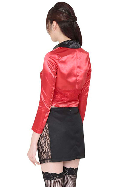 ハロウィンイベントなどに♪カジノディーラーの衣装をお探しならこれ。光沢感のある短めの真っ赤なジャケットがアクセントに!「ラスベガスディーラー」の登場です♪カジノディーラーをイメージしたこちらのコスチュームは、ジャケットとタイトスカートがセットとなっております。スカートの側面は大胆にもレース素材で肌が見えてしまうセクシーなデザイン!赤のジャケットを素肌に羽織ることで、更にアダルトな魅力を引き出せそうですね♪カジノを彩るディーラー衣装でハロウィンイベントや撮影会にもせひどうぞ!