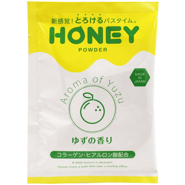 お風呂がまるごとローションに♪大人気のとろとろ入浴剤「honey」シリーズに、お手軽なパウダータイプの「ハニーパウダー ゆずの香り」が登場。●粉末タイプのとろとろ入浴剤●一回使い切りのパウチ入り(30g)●コンパクトサイズで携帯にも便利●お湯に溶かすだけのお手軽タイプ●3〜5分でローション風呂が完成●クセになるようなとろ〜り感触●爽やかな柑橘系ゆずの香り付き●コラーゲン&ヒアルロン酸配合●サッと洗い流せるので後処理も簡単。とろけるようなバスタイムをもっと手軽に♪お風呂がまるごとローションだったら…そんな願いをカタチにした大人気の入浴剤「honey」の粉末バージョン。お風呂に入れて混ぜるだけで、手軽にとろ〜りローション風呂が完成!お泊りデートや旅行にも携帯できるパウチ入りなので、贅沢な癒しのバスタイムをいつでも気軽にお楽しみいただけます。※【ご使用方法】浴槽にお湯150〜200Lを溜め、1包(30g)を入れてよくかき混ぜたら、3〜5分程度おいてからご入浴下さい。 |