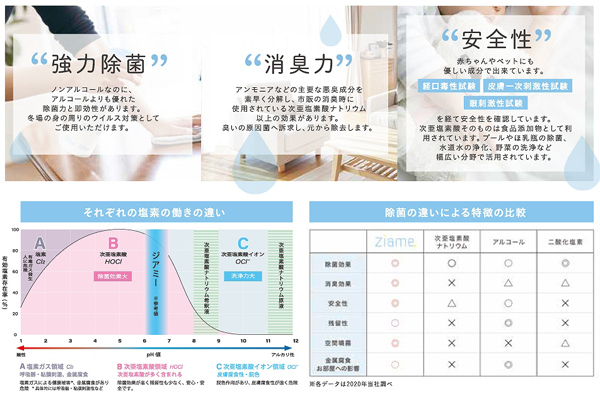 水道水に混ぜて溶かすだけ!いつでも新鮮な次亜塩素酸が作れる顆粒タイプの除菌&消臭液「ジアミー」。次亜塩素酸は古くなるほどパワーは無くなってしまいますが、ジアミーならいつでも手軽に次亜塩素酸除菌水を作れます♪肌に触れても大丈夫な弱酸性、濃度は自由に調整可能!除菌用マルチアトマイザー「フルガン(b31063)」と合わせても◎500ml分x3包とスプレーボトル付属