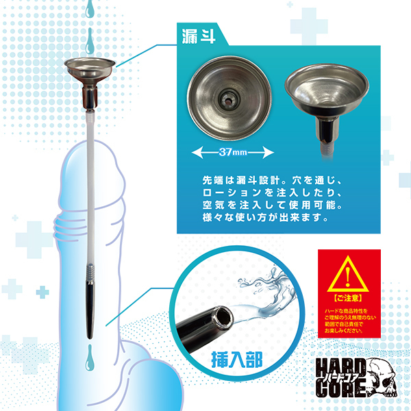極める者だけが味わえる悶絶快感。荒々しい刺激が楽しめるグッズブランド『ハードコア』シリーズに、漏斗付きプラグがラインナップ!本体フロントに備わった漏斗から、液体や空気を入れLet’s play!!チューブはメディカルグレードシリコン素材で柔らいから、ナカに入れても安心。挿入部はステンレス製で、温冷感プレイも出来る。もちろん丸洗い可能なので衛生的。極めし者のみ許された快感を愉しもう。<ハードコアシリーズとは?>頭が真っ白になるほどの未知なる刺激…コントロール不能な快感….目指すはエキスパート。極める者だけが味わえる、気絶しそうなほどの悶絶快感。エーワンが送る、ハードで本格的な使用感を体感できるグッズブランドです。 |