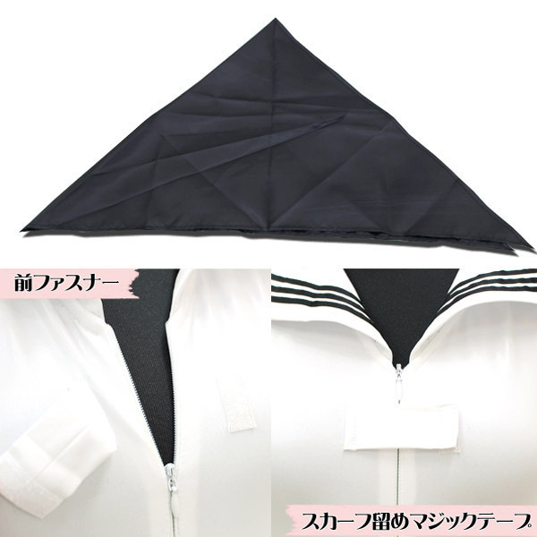 大人気のセーラー服とレオタードが合体!セーラー襟+スカーフ付きセーラーレオタード「セーラーノースリーブレオタード 白 BIG」。襟とスカーフの紺色をアクセントにした爽やかな白ベースのノースリーブレオタード。深めのハイレグ&ハーフバック、ぴちっとしたフィット感がクセになるので、拘束用としても良さげなレオタードです。フロントファスナーは前開きの大胆仕様で着脱も簡単!スキッパー風にもセクシーな露出スタイルにもアレンジが可能です。※水洗い可、塩素系漂白剤による漂白不可、アイロン不可、ドライクリーニング不可、色落ちの可能性があります。 |