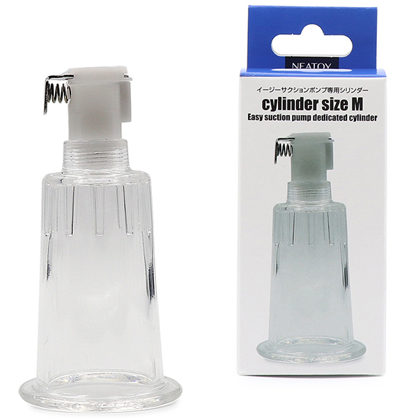 イージーサクションポンプ専用シリンダーのMサイズです。こちらのMサイズは内径が2.5cmです。イージーサンクションポンプの本体にこちらの専用シリンダーを付け替えることで意図した箇所をピンポイントで吸引できます。サイズ:7.5cm×3.9cm内径:2.5cm。スタンダードにお使いいただけるサイズとなっています。 |