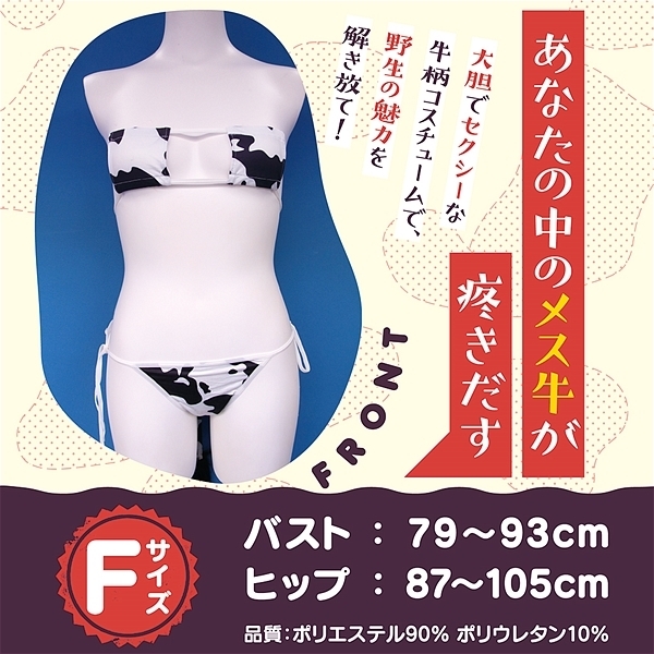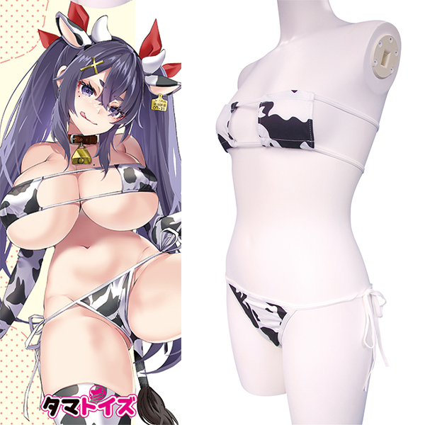 大胆でセクシーな牛柄コスチュームで野生の魅力を解き放て!あなたの中のメス牛が疼きだす、露出度高めの眼帯ビキニとしっぽ付きの紐ビキニショーツ。●メーカー型番:TMT-1711